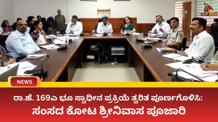 ಉಡುಪಿ : ಕಾರ್ಕಳದ ಮೂಲಕ ಹಾದುಹೋಗುವ ರಾಷ್ಟ್ರೀಯ ಹೆದ್ದಾರಿ 169ಎ ಅಭಿವೃದ್ಧಿ ಕಾಮಗಾರಿಗೆ ಅಗತ್ಯವಿರುವ ಭೂ ಸ್ವಾಧೀನ ಪ್ರಕ್ರಿಯೆಯನ್ನು ವಿಳಂಬವಿಲ್ಲದೆ ಪೂರ್ಣಗೊಳಿಸಿ, ಭೂ ಮಾಲೀಕರಿಗೆ ವೈಜ್ಞಾನಿಕ ಮೌಲ್ಯಮಾಪನದ ಆಧಾರದಲ್ಲಿ ಸಮರ್ಪಕ ಪರಿಹಾರವನ್ನು ನೀಡಬೇಕು ಎಂದು ಕೋಟ ಶ್ರೀನಿವಾಸ ಪೂಜಾರಿ ಅವರು ಅಧಿಕಾರಿಗಳಿಗೆ ಸೂಚಿಸಿದರು.
