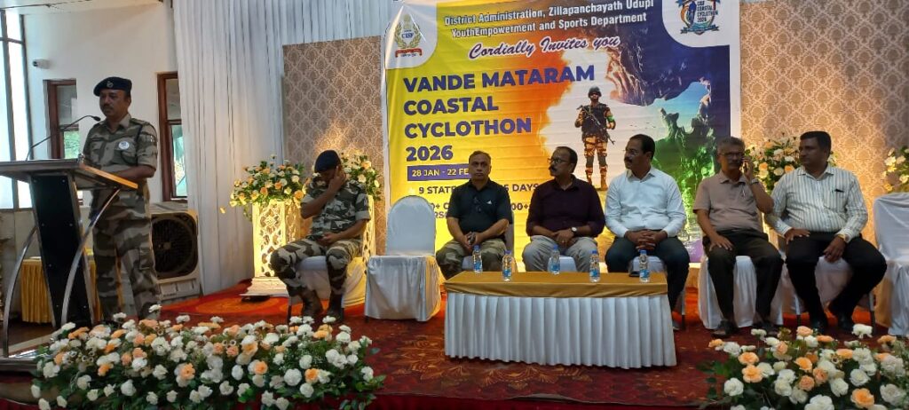 ಉಡುಪಿ : ದೇಶದ ಕರಾವಳಿ ಭದ್ರತೆ ಹಾಗೂ ದೇಶಭಕ್ತಿಯ ಅರಿವು ಮೂಡಿಸುವ ಉದ್ದೇಶದಿಂದ ಕೇಂದ್ರೀಯ ಕೈಗಾರಿಕಾ ಭದ್ರತಾ ಪಡೆ (ಸಿಐಎಸ್ಎಫ್) ವತಿಯಿಂದ ಆಯೋಜಿಸಲಾದ ವಂದೇ ಮಾತರಂ ಕೋಸ್ಟಲ್ ಸೈಕ್ಲೋಥಾನ್–2026 ಒಂದು ಬೃಹತ್ ರಾಷ್ಟ್ರೀಯ ಜಾಗೃತಿ ಅಭಿಯಾನವಾಗಿದೆ ಎಂದು ಸಿಐಎಸ್ಎಫ್ ಉಪ ಕಮಾಂಡೆಂಟ್ ಸಂದೀಪ್ ಚಕ್ರವರ್ತಿ ಹೇಳಿದರು.