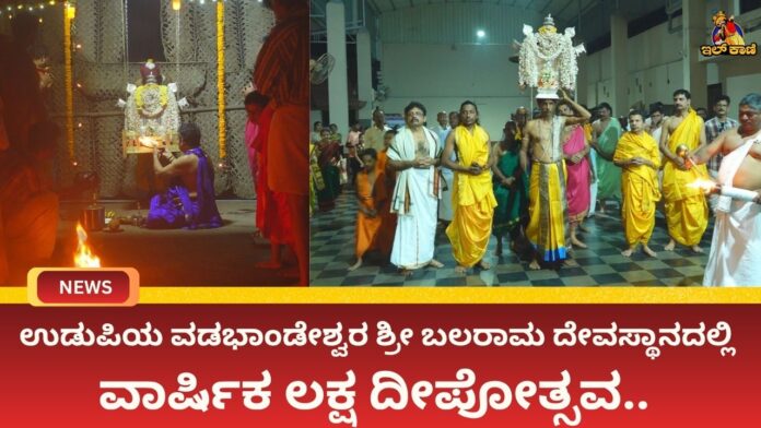 ಉಡುಪಿ : ವಡಭಾಂಡೇಶ್ವರ ಶ್ರೀ ಬಲರಾಮ ದೇವಾಲಯದಲ್ಲಿ ವಾರ್ಷಿಕ ಲಕ್ಷ ದೀಪೋತ್ಸವ ಭಾನುವಾರ ಸಂಜೆ ಭಕ್ತಿಭಾವ ಮತ್ತು ವೈಭವದಿಂದ ನೆರವೇರಿತು.