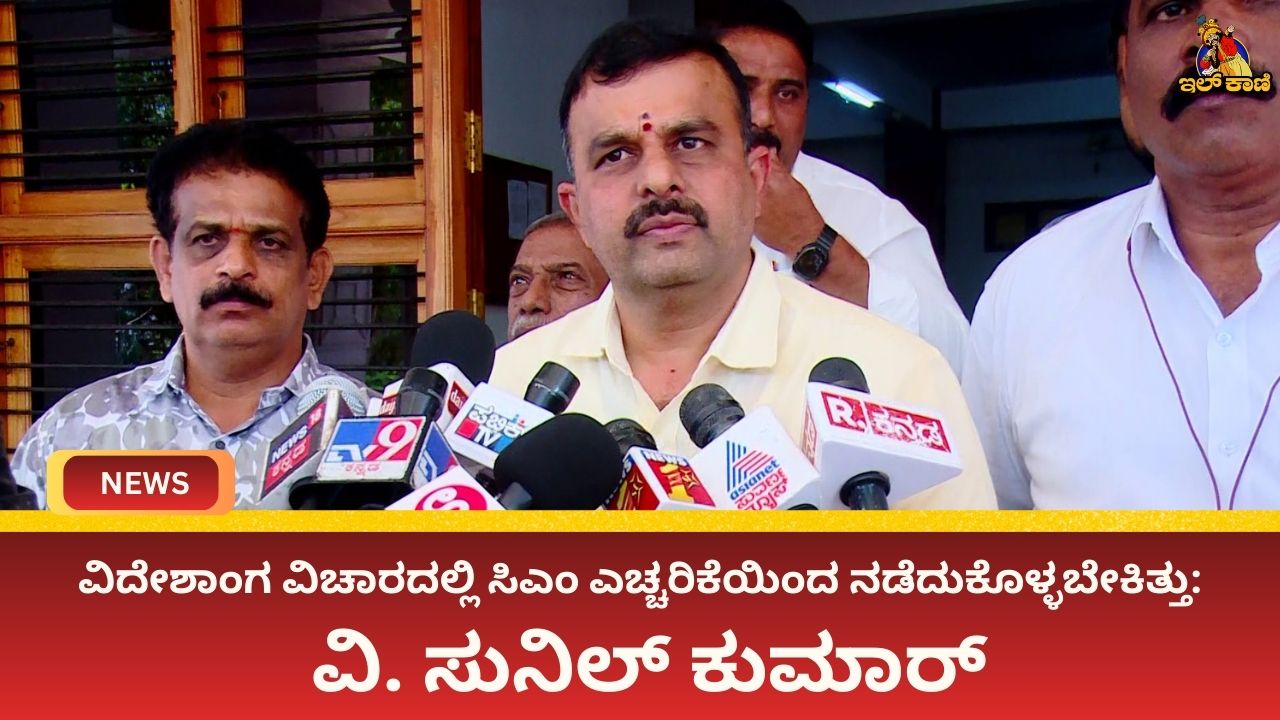 ವಿದೇಶಾಂಗ ವಿಚಾರದಲ್ಲಿ ಸಿಎಂ ಎಚ್ಚರಿಕೆಯಿಂದ ನಡೆದುಕೊಳ್ಳಬೇಕಿತ್ತು: ವಿ. ಸುನಿಲ್ ಕುಮಾರ್