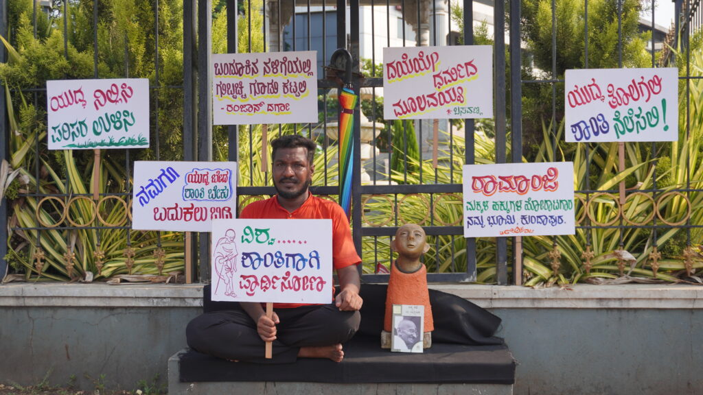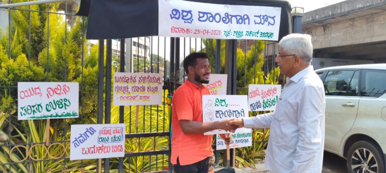 ವಿಶ್ವಶಾಂತಿಗಾಗಿ ಮೌನ ಪ್ರತಿಭಟನೆ: ರಾಮಾಂಜಿ ನಮ್ಮಭೂಮಿ