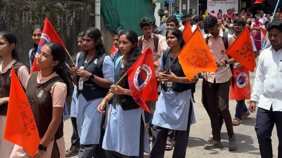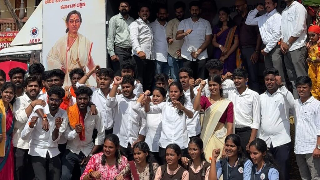 ಉಡುಪಿ : ಅಖಿಲ ಭಾರತೀಯ ವಿದ್ಯಾರ್ಥಿ ಪರಿಷತ್ ಕರ್ನಾಟಕ ದಕ್ಷಿಣ ಪ್ರಾಂತ ವತಿಯಿಂದ ವೀರ ರಾಣಿ ಅಬ್ಬಕ್ಕ ಅವರ 500 ನೇ ಜನ್ಮ ಜಯಂತ್ಯೋತ್ಸವ ಪ್ರಯುಕ್ತ ನಡೆಯುತ್ತಿರುವ ರಥಯಾತ್ರೆ ಯನ್ನು ಉಡುಪಿ ನಗರದಲ್ಲಿ ಭವ್ಯ ಶೋಭಯಾತ್ರೆಯ ಮೂಲಕ ರಥವನ್ನು ಸ್ವಾಗತಿಸಲಾಯಿತು. ಉಡುಪಿ ಪೂರ್ಣಪ್ರಜ್ಞ ಕಾಲೇಜಿನಿಂದ ಹೊರಟ ರಥಯಾತ್ರೆಯು ಕವಿ ಮುದ್ದಣ ಮಾರ್ಗವಾಗಿ ರಥಬೀದಿಯವರೆಗೆ ಸಾಗಿ ಬಂತು.