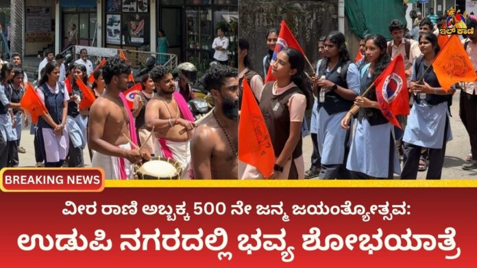ಉಡುಪಿ : ಅಖಿಲ ಭಾರತೀಯ ವಿದ್ಯಾರ್ಥಿ ಪರಿಷತ್ ಕರ್ನಾಟಕ ದಕ್ಷಿಣ ಪ್ರಾಂತ ವತಿಯಿಂದ ವೀರ ರಾಣಿ ಅಬ್ಬಕ್ಕ ಅವರ 500 ನೇ ಜನ್ಮ ಜಯಂತ್ಯೋತ್ಸವ ಪ್ರಯುಕ್ತ ನಡೆಯುತ್ತಿರುವ ರಥಯಾತ್ರೆ ಯನ್ನು ಉಡುಪಿ ನಗರದಲ್ಲಿ ಭವ್ಯ ಶೋಭಯಾತ್ರೆಯ ಮೂಲಕ ರಥವನ್ನು ಸ್ವಾಗತಿಸಲಾಯಿತು. ಉಡುಪಿ ಪೂರ್ಣಪ್ರಜ್ಞ ಕಾಲೇಜಿನಿಂದ ಹೊರಟ ರಥಯಾತ್ರೆಯು ಕವಿ ಮುದ್ದಣ ಮಾರ್ಗವಾಗಿ ರಥಬೀದಿಯವರೆಗೆ ಸಾಗಿ ಬಂತು.