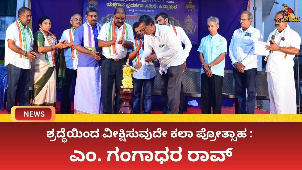 ಉಡುಪಿ: ಕಲೆಯ ಬೆಳವಣಿಗೆಯಲ್ಲಿ ಪ್ರೇಕ್ಷಕರ ಪಾತ್ರ ಅತ್ಯಂತ ಮಹತ್ವದ್ದು. ಶ್ರದ್ಧೆಯಿಂದ, ಮೌನವಾಗಿ ಕೊನೆಯ ತನಕ ಕುಳಿತು ಪ್ರದರ್ಶನ ವೀಕ್ಷಿಸುವುದೇ ಕಲಾವಿದರಿಗೆ ಸಿಗುವ ದೊಡ್ಡ ಪ್ರೋತ್ಸಾಹ ಎಂದು ಯಕ್ಷಗಾನ ಕಲಾರಂಗದ ಅಧ್ಯಕ್ಷ ಎಂ. ಗಂಗಾಧರ ರಾವ್ ಹೇಳಿದರು. ಅವರು ಡಿ.25ರಂದು ಸಿದ್ದಾಪುರ ಸರ್ಕಾರಿ ಪ್ರೌಢಶಾಲಾ ಆವರಣದಲ್ಲಿ ಉಡುಪಿಯ ಯಕ್ಷಶಿಕ್ಷಣ ಟ್ರಸ್ಟ್ ಹಾಗೂ ಸ್ಥಳೀಯ ಪ್ರದರ್ಶನ ಸಂಘಟನಾ ಸಮಿತಿಯ ಸಹಯೋಗದಲ್ಲಿ ಆಯೋಜಿಸಿದ್ದ ಎರಡು ದಿನಗಳ ಕಿಶೋರ ಯಕ್ಷಗಾನ ಸಂಭ್ರಮವನ್ನು ಉದ್ಘಾಟಿಸಿ ಮಾತನಾಡಿದರು. ಮಕ್ಕಳನ್ನು ಪ್ರೋತ್ಸಾಹಿಸುವ ಮನೋಭಾವ ಪ್ರೇಕ್ಷಕರಲ್ಲಿ ಇರಬೇಕು ಎಂದು ಅವರು ಕರೆ ನೀಡಿದರು.