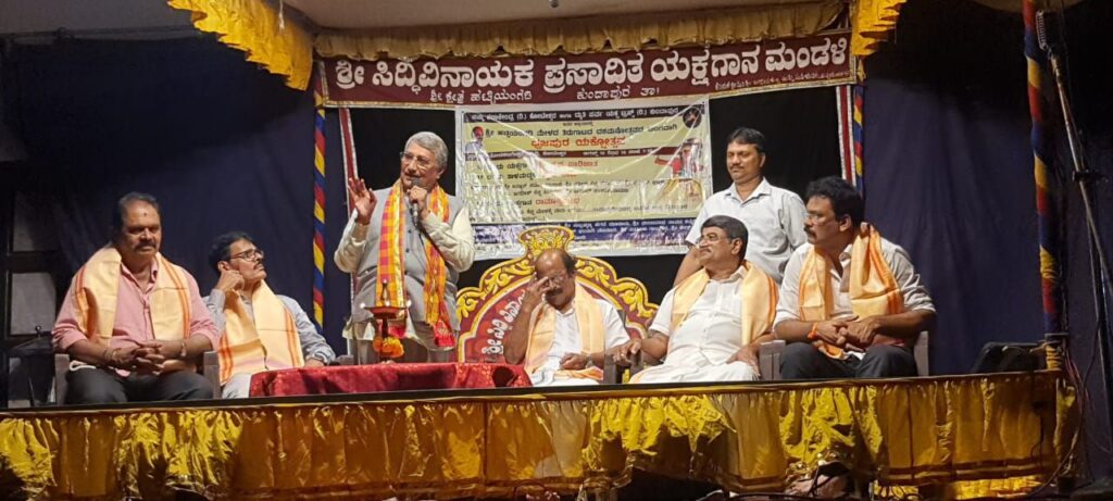 ಅವರು ದ್ಯುತಿಪರ್ವ ಯಕ್ಷ ಟ್ರಸ್ಟ್ ಕುಂದಾಪುರ ಹಾಗೂ ನಮ್ಮ ಕಲಾಕೇಂದ್ರ ಕೋಟೇಶ್ವರ ಇವರ ಜಂಟಿ ಆಶ್ರಯದಲ್ಲಿ ಶ್ರೀ ಹಟ್ಟಿಯಂಗಡಿ ಮೇಳದ ತಿರುಗಾಟದ ದಶಮಾನೋತ್ಸವದ ಅಂಗವಾಗಿ ಕೋಟೇಶ್ವರದ ಶ್ರೀ ಕೋಟಿಲಿಂಗೇಶ್ವರ ದೇವರ ಸನ್ನಿಧಿಯಲ್ಲಿ ಶನಿವಾರ ಹಮ್ಮಿಕೊಂಡ ‘ಧ್ವಜಪುರ ಯಕ್ಷೋತ್ಸವ ‘ ಕಾರ್ಯಕ್ರಮವನ್ನು ಉದ್ಘಾಟಿಸಿ ಮಾತನಾಡಿದರು.