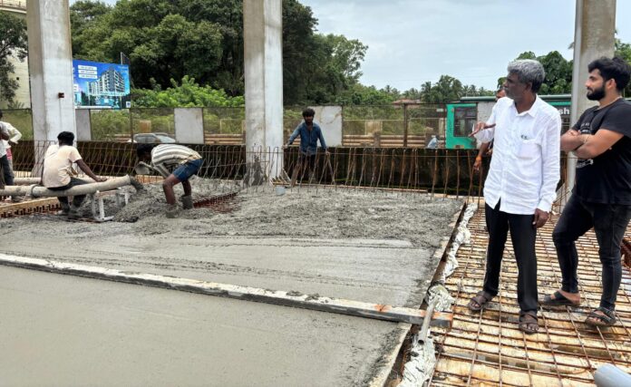 ಉಡುಪಿ: ಮಳೆ ಕಾರಣಕೋಸ್ಕರ ಬಹುದಿನಗಳಿಂದ ಇಂದ್ರಾಳಿ ರೈಲ್ವೆ ಮೇಲ್ಸೇತುವೆಯ ಕಾಂಕ್ರೆಟೀಕರಣ ವಿಳಂಬವಾಗುತ್ತಿದ್ದು. ಇದೀಗ ಮಳೆ ಕಡಿಮೆಯಾದ ಹಿನ್ನಲೆಯಲ್ಲಿ ಉಡುಪಿ ಚಿಕ್ಕಮಗಳೂರು ಲೋಕಸಭಾ ಸದಸ್ಯ ಕೋಟ ಶ್ರೀನಿವಾಸ ಪೂಜಾರಿಯವರ ಸಮಕ್ಷಮ ಇಂದ್ರಾಳಿ ಮೇಲ್ಸೇತುವೆ ಕಾಂಕ್ರೆಟೀಕರಣ ಮಾಡುವ ಕೆಲಸ ಆರಂಭವಾಗಿದೆ.