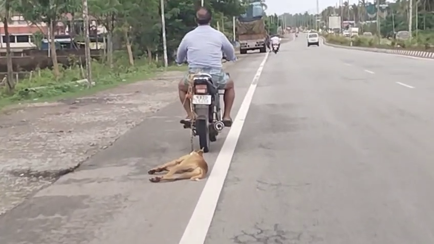 ಈ ಘಟನೆ ನಡೆದಿರುವುದು ಉಡುಪಿ ಜಿಲ್ಲೆಯ ಬೈಂದೂರು ತಾಲೂಕಿನ ರಾಷ್ಟ್ರೀಯ ಹೆದ್ದಾರಿ 66 ರಲ್ಲಿ. ಬೈಂದೂರು ಪಡುವರಿ ಮೂಲ ವ್ಯಕ್ತಿಯೋರ್ವರು ಒಂದು ನಾಯಿಯನ್ನು ತಮ್ಮ ಬೈಕ್ ಗೆ ಕಟ್ಟಿ ಎಳೆದುಕೊಂಡು ಹೋಗುತ್ತಿರುವ ದೃಶ್ಯವನ್ನು ಹಿಂಬಂದಿಯಲ್ಲಿ ಬರುತ್ತಿದ್ದ ವಾಹನದಲ್ಲಿದ್ದವರು ಸೆರೆ ಹಿಡಿದಿದ್ದಾರೆ. ಸ್ಚಲ್ವ ದೂರದವರೆಗೂ ಬೈಕ್ ಗೆ ವೇಗಕ್ಕೆ ಸರಿಯಾಗಿ ಓಡಿ ಓಡಿ ಸುಸ್ತಾದ ನಾಯಿ ಸುಮ್ಮನಾಗಿದೆ, ಆದರೆ ನಾಯಿ ರಸ್ತೆ ಮೇಲೆ ಬಿದ್ದು ಎಳೆದುಕೊಂಡು ಹೋಗುತ್ತಿರು ಕೂಡ ಇದನ್ನು ಗಮನಿಸದೆ ಸುಮಾರು ೨ ಕಿಮೀ ತನಕ ಬೈಕ್ ಸವಾರ ನಾಯಿಯನ್ನು ಎಳೆದು ಸಾಗಿದ್ದಾನೆ.
