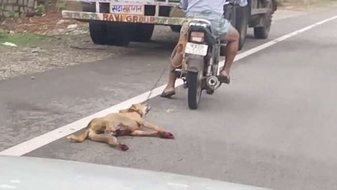 ಸಾಕು ನಾಯಿಯನ್ನು ಬೈಕ್‌ ಗೆ ಕಟ್ಟಿ 2 ಕಿಮೀ ಎಳೆದುಕೊಂಡು ಹೋದ ಆಸಾಮಿ..