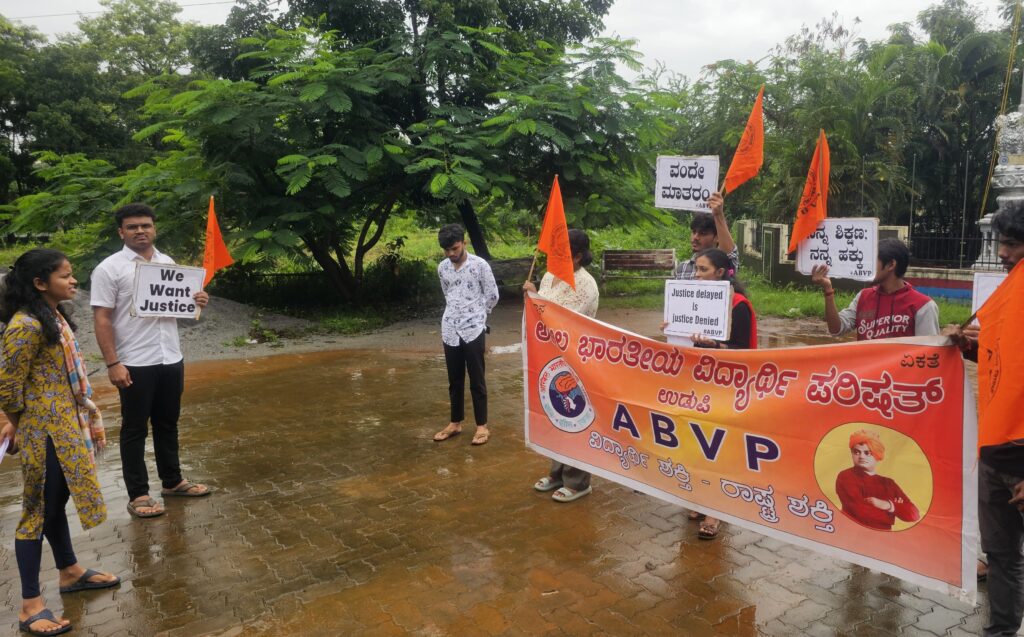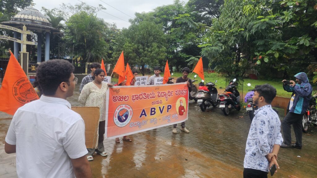ಉಡುಪಿ : ಅಖಿಲ ಭಾರತೀಯ ವಿದ್ಯಾರ್ಥಿ ಪರಿಷತ್ ಉಡುಪಿ ನಗರ ವತಿಯಿಂದ KCET ಯಿಂದ ವಿದ್ಯಾರ್ಥಿಗಳು ಎದುರಿಸುತ್ತಿರುವ ಸೀಟ್ ಬ್ಲಾಕಿಂಗ್, ಹಣ ವಸೂಲಿ ದಂಧೆ, ಸರ್ವರ್ ಸಮಸ್ಯೆಯನ್ನು ಖಂಡಿಸಿ ಅಜ್ಜರಕಾಡು ಯುದ್ಧಸ್ಮಾರಕದ ಬಳಿ ಪ್ರತಿಭಟನೆಯನ್ನು ನಡೆಸಿ ತಹಶೀಲ್ದಾರರ ಮೂಲಕ ಮನವಿ ನೀಡಲಾಯಿತು. ನಗರ ಕಾರ್ಯದರ್ಶಿಯಾದ ಮಾಣಿಕ್ಯ ಭಟ್ ಮಾತನಾಡಿ ಈ ಬಾರಿ ಸಾಮಾನ್ಯ ಪ್ರವೇಶಾತಿ ಪರೀಕ್ಷೆಯಲ್ಲಿನ ಕೌನ್ಸೆಲಿಂಗ್ ಪ್ರಕ್ರಿಯೆಯಲ್ಲಿ ಅನೇಕ ಗೊಂದಲಗಳನ್ನು ಸೃಷ್ಟಿಸಿರುವುದುಂಟು. KEA ಅವರ ಸರ್ವರ್ ಸಮಸ್ಯೆಯಿಂದ ಅನೇಕ ವಿದ್ಯಾರ್ಥಿಗಳಿಗೆ ಆಪ್ಷನ್ ಎಂಟ್ರಿ ಪ್ರಕ್ರಿಯೆಯನ್ನು ಸುಲಭವಾಗಿ ಮಾಡಲು ಸಾಧ್ಯವಾಗುತ್ತಿಲ್ಲ. ಹೀಗಾಗಿ ವಿದ್ಯಾರ್ಥಿಗಳಿಂದ ಅನ್ಯಾಯವಾಗಿ ವಸೂಲಿ ಮಾಡಿರುವ 75೦ ರೂ/- ಶುಲ್ಕವನ್ನು ಮರುಪಾವತಿಸಬೇಕು ಎಂದರು.