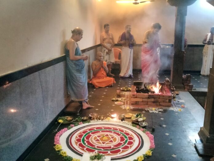 ಉಡುಪಿ : ದೇಶದ ಗಡಿಭಾಗದಲ್ಲಿ ಶತ್ರುರಾಷ್ಟ್ರಗಳ ಸವಾಲುಗಳನ್ನೆದುರಿಸಿ ಯುದ್ಧ ಸನ್ನದ್ಧಸ್ಥಿತಿಯಲ್ಲಿ ದಿಟ್ಟತನದಿಂದ ದೇಶವನ್ನು ಕಾಯುತ್ತಾ ಸೈನಿಕರ ಯೋಗಕ್ಷೇಮ ಮತ್ತು ದೇಶದ ಸುರಕ್ಷೆ ಸಮೃದ್ಧಿಗಾಗಿ ಪ್ರಾರ್ಥಿಸಿ ಶ್ರೀ ಪೇಜಾವರ ಶ್ರೀ ವಿಶ್ವಪ್ರಸನ್ನತೀರ್ಥ ಶ್ರೀಪಾದರ ಸಂಕಲ್ಪನಾನುಸಾರ ಉಡುಪಿಯ ಪ್ರಾಚೀನ ಸ್ಕಂದಾಲಯ ಮುಚ್ಲುಕೋಡು ಶ್ರೀ ಸುಬ್ರಹ್ಮಣ್ಯ ಸ್ವಾಮಿ ದೇವಸ್ಥಾನದಲ್ಲಿ ಶನಿವಾರ ಸಂಜೆ ಮಹಾಸುದರ್ಶನ ಮಂತ್ರ ಯಾಗ ನೆರವೇರಿತು . ವಿದ್ವಾನ್ ಕುಕ್ಕಿಕಟ್ಟೆ ರಾಮಕೃಷ್ಣ ತಂತ್ರಿಗಳ ಮಾರ್ಗದರ್ಶನದಲ್ಲಿ ವಿದ್ವಾನ್ ಸಗ್ರಿ ಆನಂದತೀರ್ಥಾಚಾರ್ಯರು, ವಿದ್ವಾನ್ ಲಕ್ಷ್ಮೀನಾರಾಯಣ ತಂತ್ರಿ ಮತ್ತು ವಿದ್ವಾನ್ ಕೆ ಜೆ ಪವನಕುಮಾರರು ಯಾಗವನ್ನು ನೆರವೇರಿಸಿದರು .
