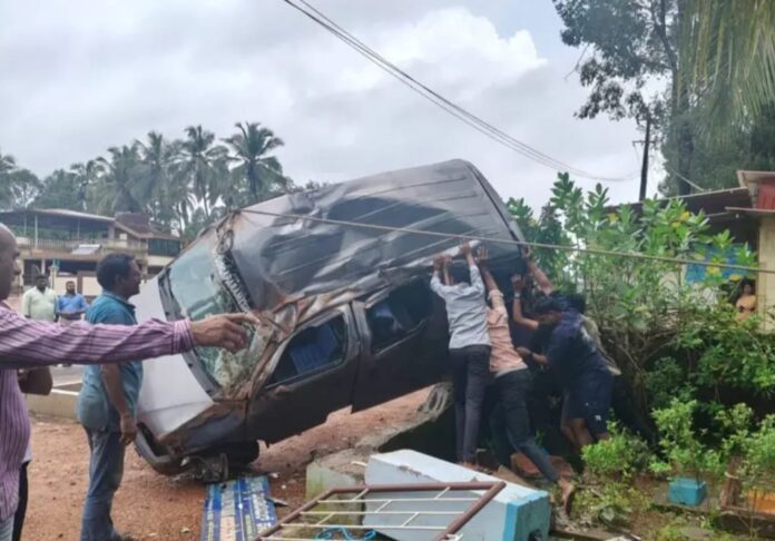 ಹೆಬ್ರಿ: ವೇಗವಾಗಿ ಬಂದ ಕಾರು ಗುರು ಕೃಪಾ ಕಾಂಪೌಂಡ್ ಗೆ ಗುದ್ದಿದ ಘಟನೆ ಹೆಬ್ರಿ- ಉಡುಪಿ ರಾಷ್ಟ್ರೀಯ ಹೆದ್ದಾರಿ ಎಸ್.ಆರ್. ಸ್ಕೂಲ್ ಬಳಿ ನಡೆದಿದೆ. ಅಪಘಾತದ ತೀವ್ರತೆಗೆ ಕಾರು ಪಲ್ಟಿಯಾಗಿದ್ದು, ಕಾಂಪೌಂಡ್ ದ್ವಂಸಗೊಂಡಿದೆ. ಆದರೆ ಅದೃಷ್ಟಾವಶಾತ್ ಎನ್ನುವಂತೆ ಕಾರಿನ ಚಾಲಕ ಪ್ರಾಣಾಯಾಪದಿಂದ ಪಾರಾಗಿದ್ದಾರೆ.
