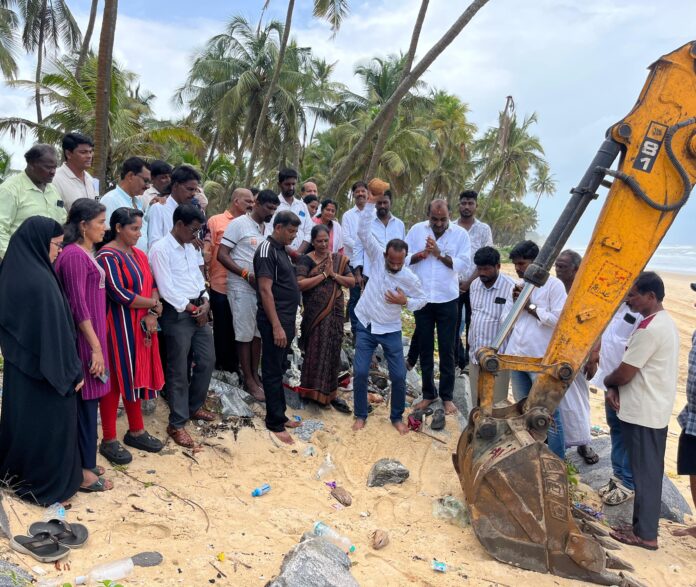 ಉಡುಪಿ : ಕೆಮ್ಮಣ್ಣು ಗ್ರಾಮ ಪಂಚಾಯತ್ ವ್ಯಾಪ್ತಿಯ ಗುಜ್ಜರಬೆಟ್ಟುವಿನ ಲಕ್ಷ್ಮೀ ನಾರಾಯಣ ಭಜನಾ ಮಂದಿರ ಹಾಗೂ ಗುರು ರಾಘವೇಂದ್ರ ಭಜನಾ ಮಂದಿರ ಬಳಿಯ ಕಡಲ್ಕೊರೆತ ಪೀಡಿತ ಭಾಗಗಳಿಗೆ ಶಾಸಕರ ಶಿಫಾರಸ್ಸಿನ ಮೇರೆಗೆ ಮಂಜೂರಾದ ₹ 1 ಕೋಟಿ ವೆಚ್ಚದ ಕಡಲ್ಕೊರೆತ ಪ್ರತಿಬಂಧಕ ಕಾಮಗಾರಿಗೆ ಉಡುಪಿ ಶಾಸಕ ಯಶ್ ಪಾಲ್ ಸುವರ್ಣ ಚಾಲನೆ ನೀಡಿದರು. ಕಾಮಗಾರಿಗೆ ಚಾಲನೆ ನೀಡಿ ಮಾತನಾಡಿದ ಶಾಸಕ ಯಶ್ ಪಾಲ್ ಸುವರ್ಣ ಕಳೆದ ಮಳೆಗಾಲದ ಸಂದರ್ಭದಲ್ಲಿ ತೀವ್ರ ಕಡಲ್ಕೊರೆತ ಉಂಟಾದ ಗುಜ್ಜರಬೆಟ್ಟು ಭಾಗದ ಪ್ರದೇಶಗಳಿಗೆ ಮೀನುಗಾರಿಕಾ ಮತ್ತು ಬಂದರು ಇಲಾಖೆಯ ಮೂಲಕ 1 ಕೋಟಿ ಅನುದಾನ ಒದಗಿಸಿ ಕಾಮಗಾರಿಗೆ ಚಾಲನೆ ನೀಡಲಾಗಿದ್ದು, ಮುಂದಿನ ದಿನಗಳಲ್ಲಿ ಕಡಲ್ಕೊರೆತ ತಡೆಗೆ ಶಾಶ್ವತ ಪರಿಹಾರ ಒದಗಿಸಲು ವಿಶೇಷ ಮುತುವರ್ಜಿ ವಹಿಸಲಾಗುವುದು ಎಂದರು.
